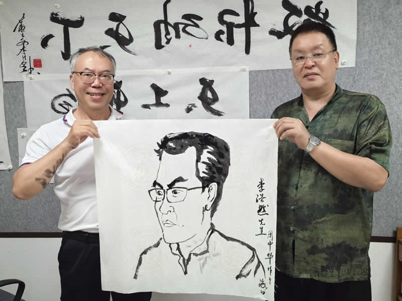 此外,中国社会艺术协会办公室主任周中华现场用毛笔为李浩然作素描头像画,寥寥几笔便勾画出李浩然的画像令人拍手称赞。