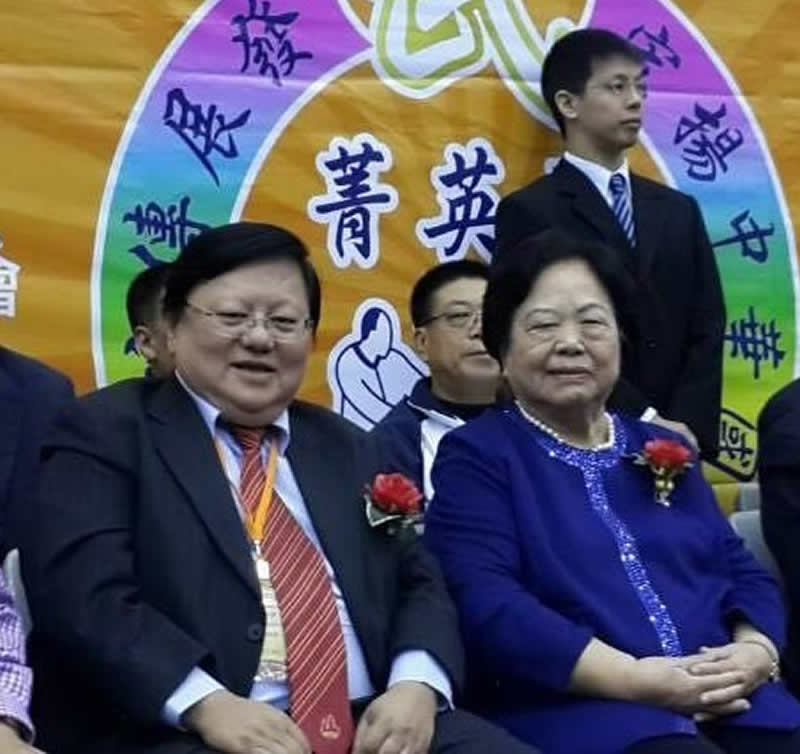 香港缅中友好协会主席王锦彪与彭珮云主席合影。