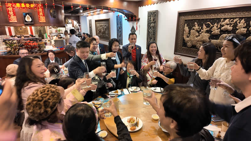 金暉耀彩,情誼綿長。為慶祝丙午新春,深化中緬兩國傳統「胞波」情誼,香港緬華互助會與香港緬中友好協會於3月9日晚,假座港島香港仔緬泰皇宮餐廳隆重舉行丙午年春茗聯歡晚宴。緬甸聯邦共和國駐香港總領事H.E. Phoo Pwint KoKo及領事館成員,與來自社會各界的逾百位嘉賢鄉彥歡聚一堂,暢敘鄉情,共賀新春,場面熱鬧溫馨。