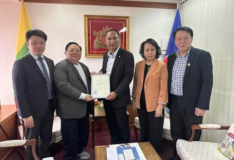 上屆緬甸總領事漢溫耐親自接受5萬元地震救濟款,並同時向王錦彪主席頒發感謝狀。