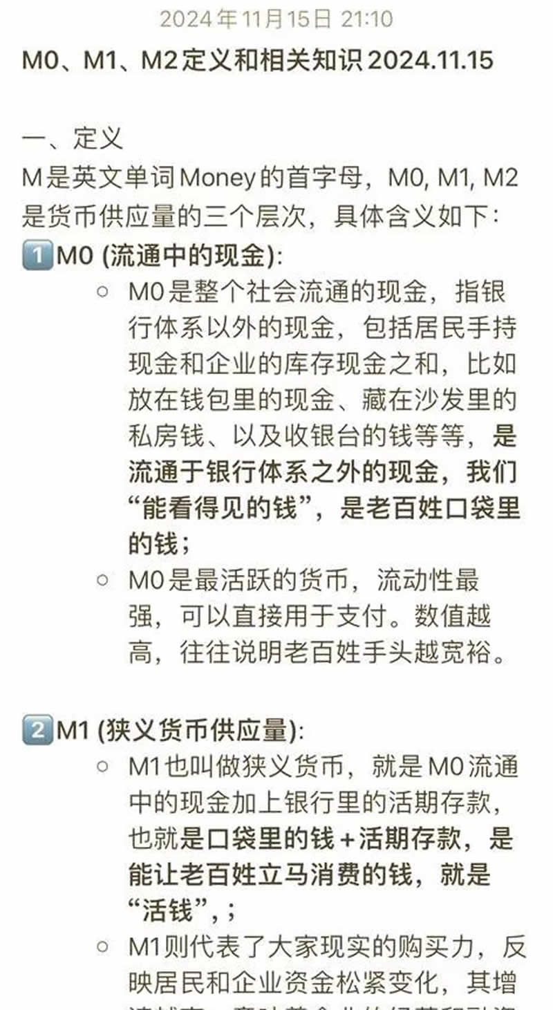 指银行体系之外由居民和企业持有的纸币、硬币,以及数字人民币。M0 是流动性最强的货币形式,可直接用于支付。