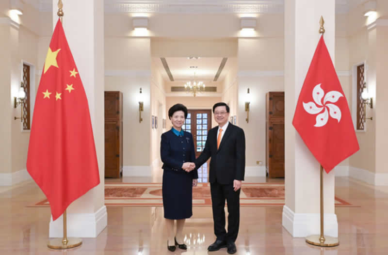 行政长官李家超昨日在礼宾府与国务委员、国务院妇女儿童工作委员会主任、中华全国妇女联合会主席谌贻琴会面。