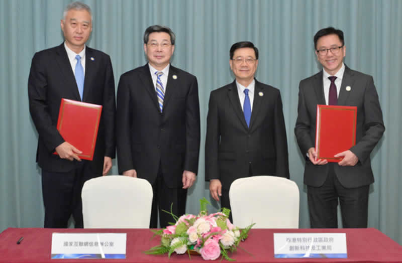 创新科技及工业局局长孙东和国家网信办副主任王京涛共同签署合作备忘录。