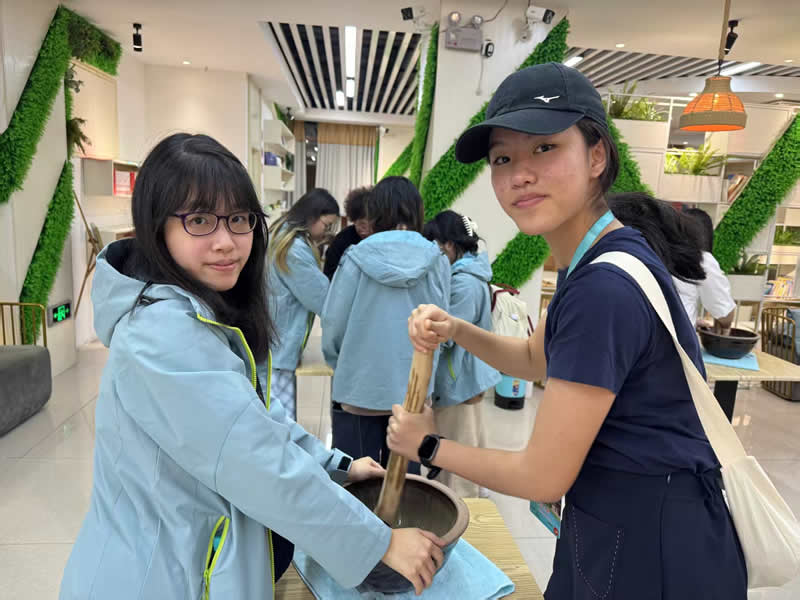 另一項深刻體驗是擂茶製作。在傳承人示範下,青年們親手操作擂缽與擂棍,將茶葉、芝麻、草藥等研磨成細膩茶泥,再沖入開水。品嘗自己勞動成果的學子感嘆:「從研磨到品飲,我深刻體會到非遺技藝的精髓,就在這份需要耐心與功夫的『手上傳承』。」