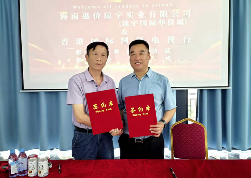 仪式上,香港国际网络电视台与海南惠侨琼宇实业有限公司琼宇国际华侨城董事长李志全签约。
